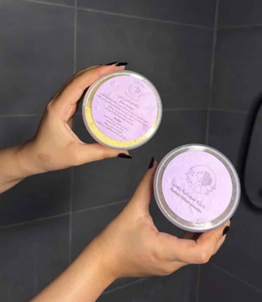 نضع ملعقه او ملعقتين حسب احتياج الجسم من الدلكه السودانيه الباودر وملعقه من دلكه فيتامين سي وتخفف بماء ورد حتى يكون القوام متجانس ليس سائلا جدا ولا متماسك جدا وتفرك في جسم جاف تفرك بلطف بحركات دائريه حتى تجف ونستخدم زيت ازاله الدلكه او اي زيت تفرك حتى تنزل من الجسم